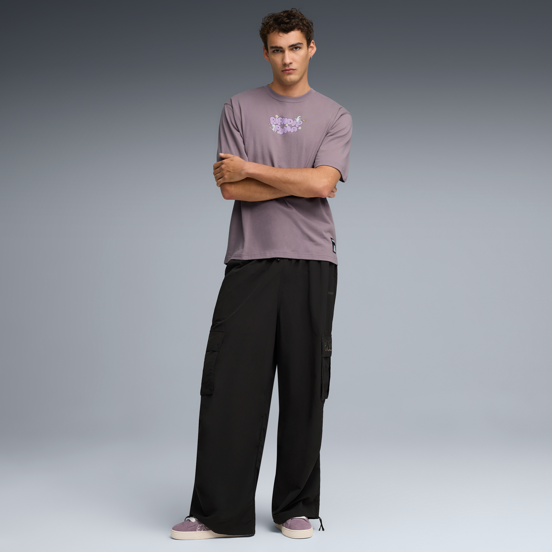 • Cabedal em camurça com estampa personalizada da colaboração Ripndip x PUMA